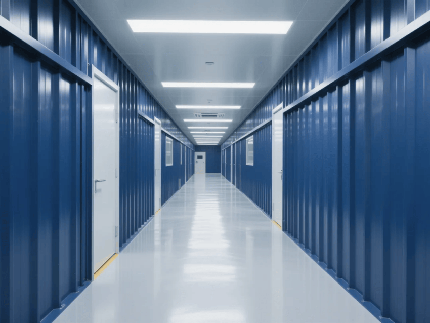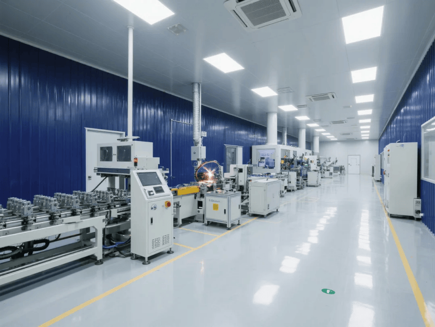 車間采用模塊化潔凈室結(jié)構(gòu),墻體采用50mm厚深藍(lán)抗菌彩鋼板,接縫處采用圓弧處理工藝。自動(dòng)化沖壓線與激光焊接工作站呈U型交替布局,工作站間設(shè)置深灰不銹鋼傳遞窗,確保物料流轉(zhuǎn)潔凈度。吊頂系統(tǒng)配置FFU高效過濾單元,維持≥20次/h換氣次數(shù),氣流組織采用頂送側(cè)回模式。