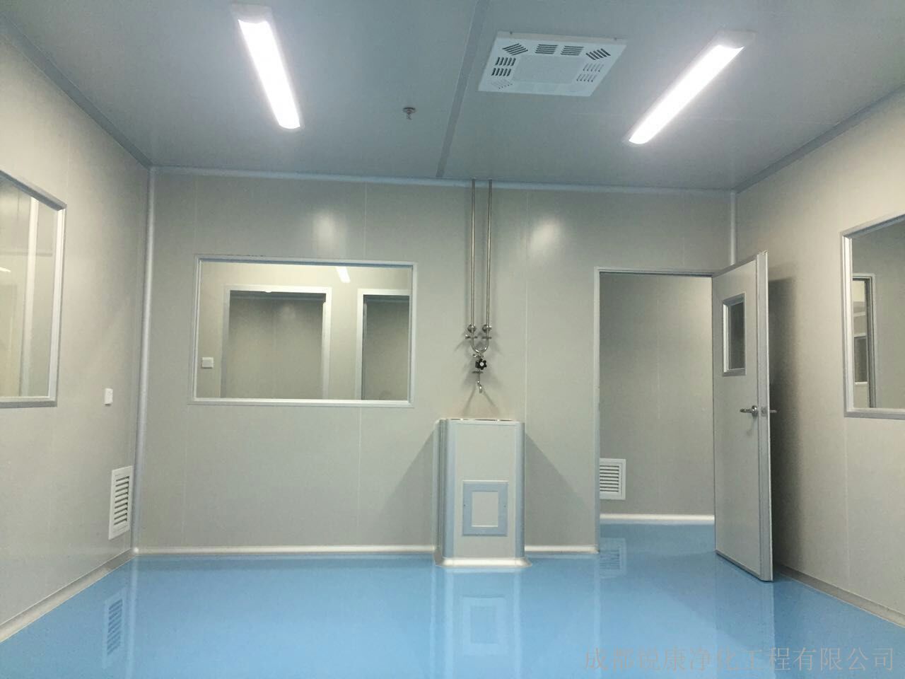 2、更衣室、風淋室、凈化間是車間凈化系統的三個基本組成部分。風淋室是進出潔凈區劃的通道,用噴出的高速潔凈氣流,有效迅速清除人體所帶的塵埃及細菌。凈化間采用夾層彩鋼板隔離空間或墻壁,上部彩鋼天花吊頂,地板用環氧樹脂鋪成。