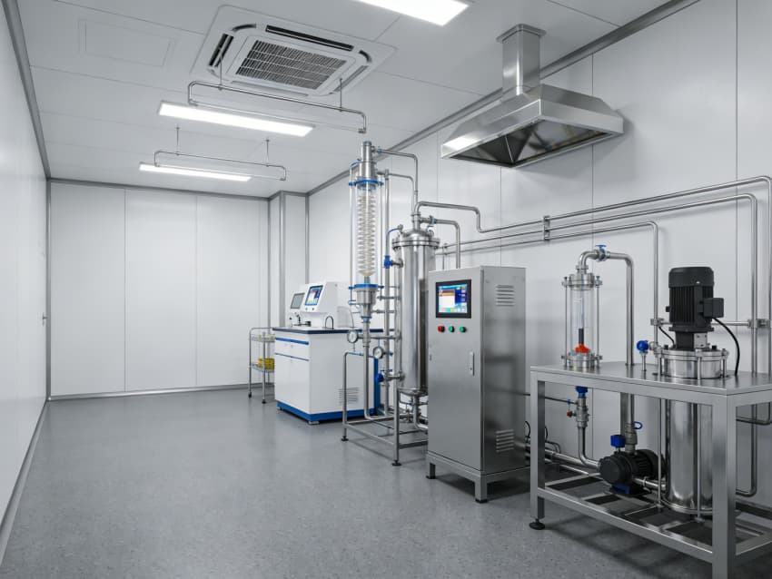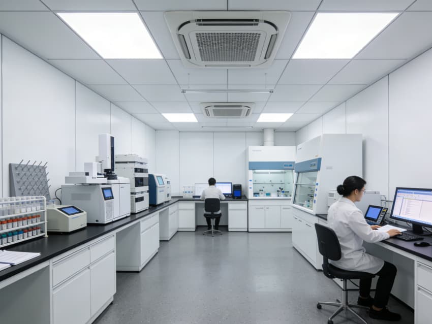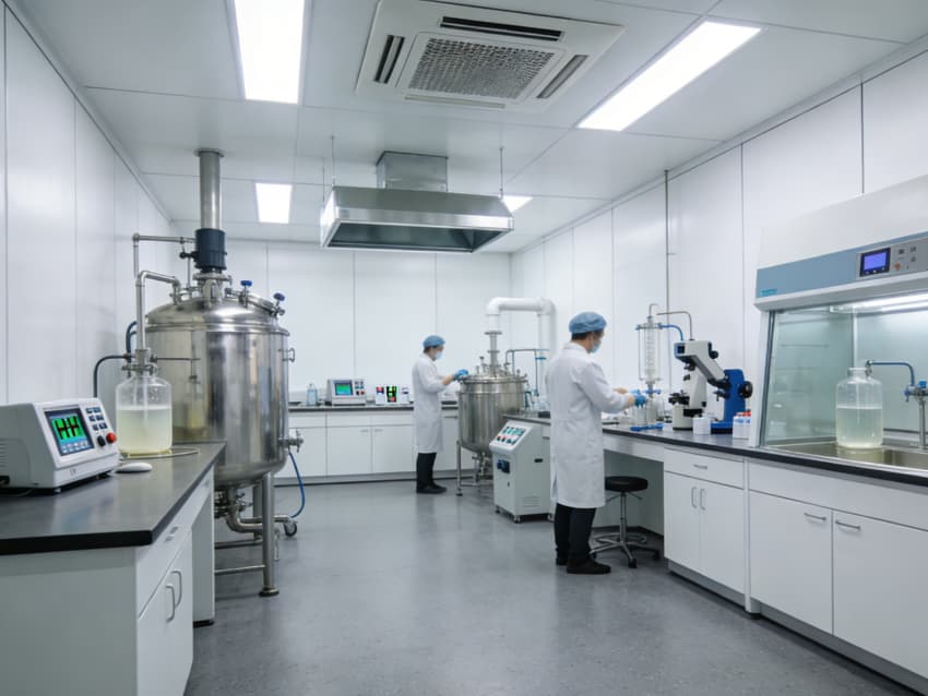 白色墻面采用食品級潔凈抗菌涂層,推行無縫拼接工藝,陰陽角圓弧倒角設計消除清潔死角,潔凈度可達Class 7級標準。車間科學劃分抗體表達區、偶聯反應區、純化區等功能區域,各區域配備獨立層流凈化與負壓防護系統,偶聯區預留精密溫控與惰性氣體接口,純化區設置無菌物料傳遞窗口,全方位規避交叉污染,保障研發生產的安全性與合規性。